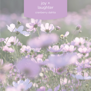 Joie + Rires: Un délicieux bouquet fruité de canneberges sucrées, de nectar de prune et de notes de dahlia en fleurs se mélangent au parfum d’acajou, créant un parfum élégant et joyeux. Huiles essentielles: Zeste d’orange, citron et bois de cèdre.
